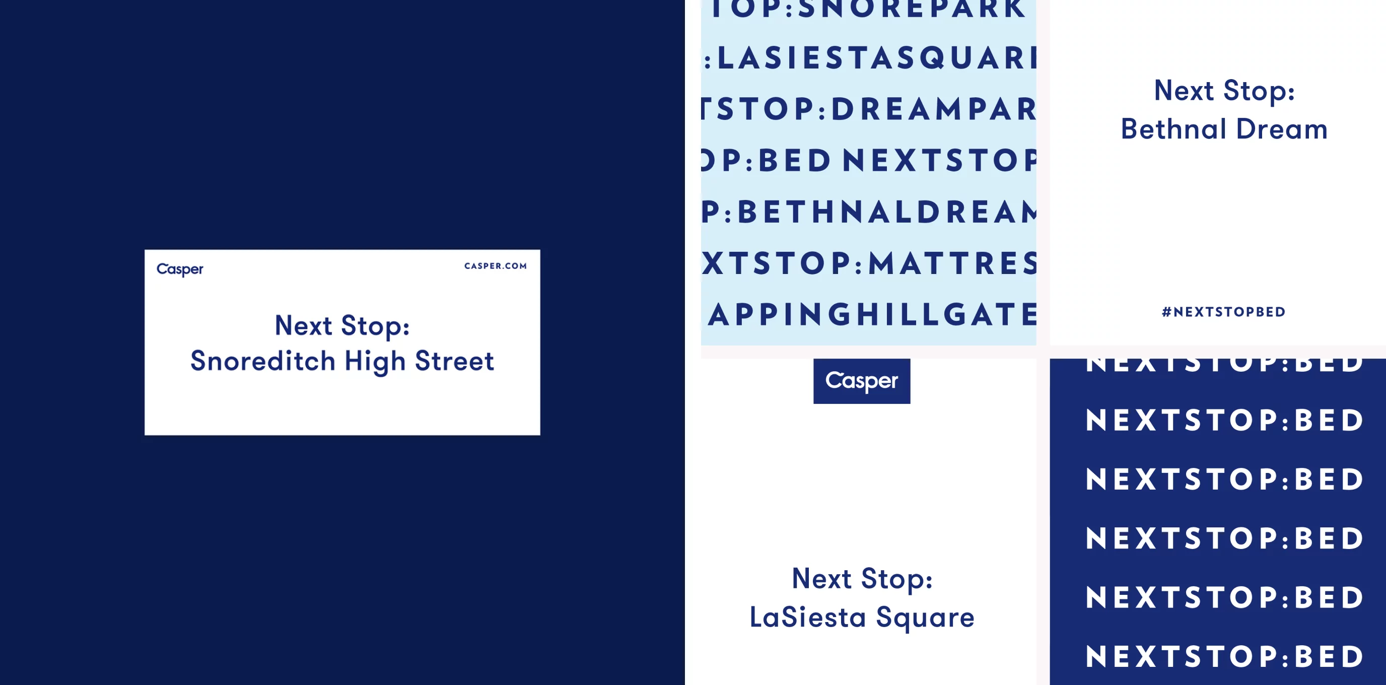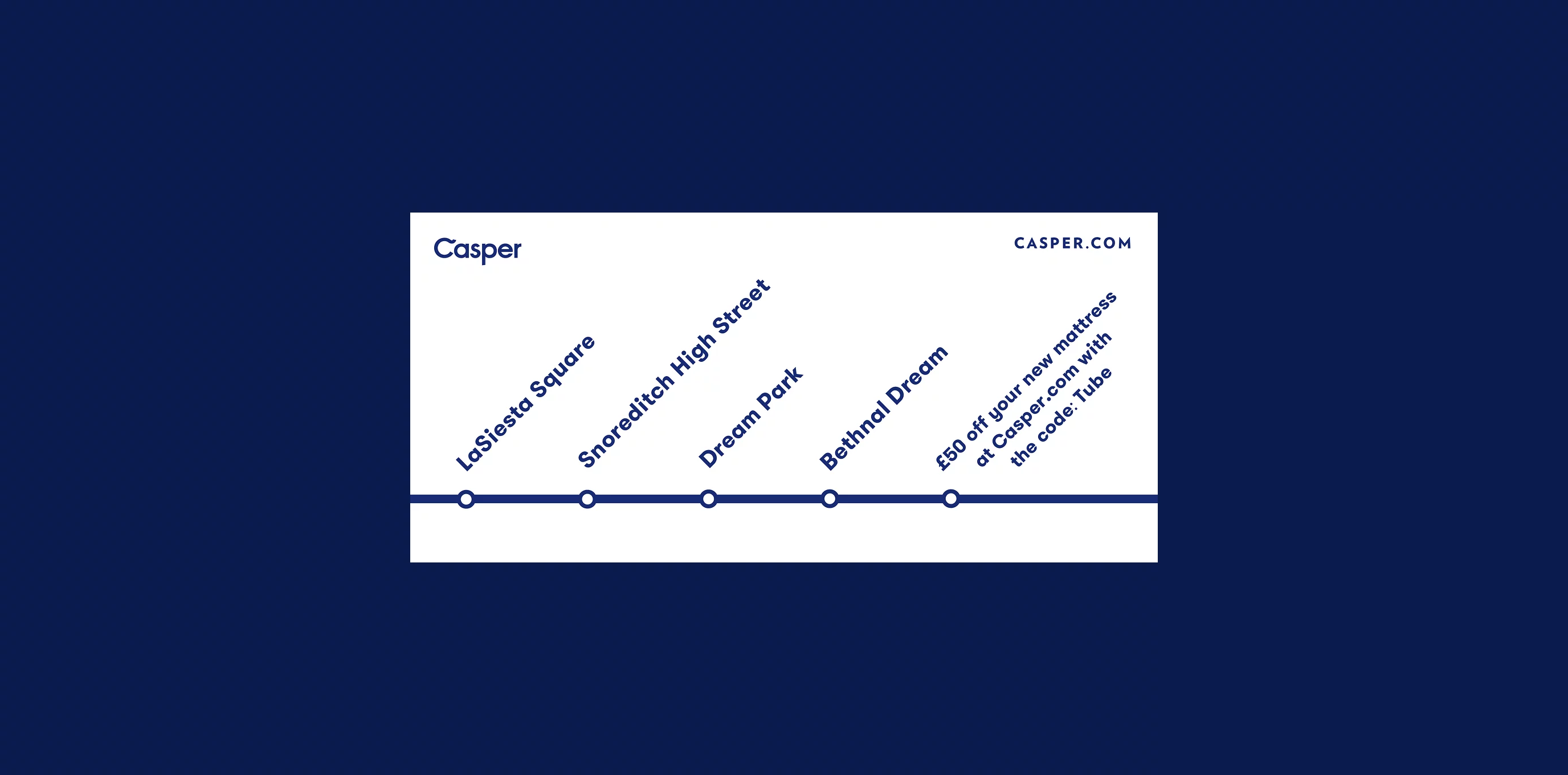 We used sleep-related puns and taglines to position the Casper bed as the ultimate destination one wants to be. We developed messaging that connected with transit audiences while respecting the environment. Following initial success, we expanded the campaign to Paris and other markets, maintaining consistent tonality and visual elements.