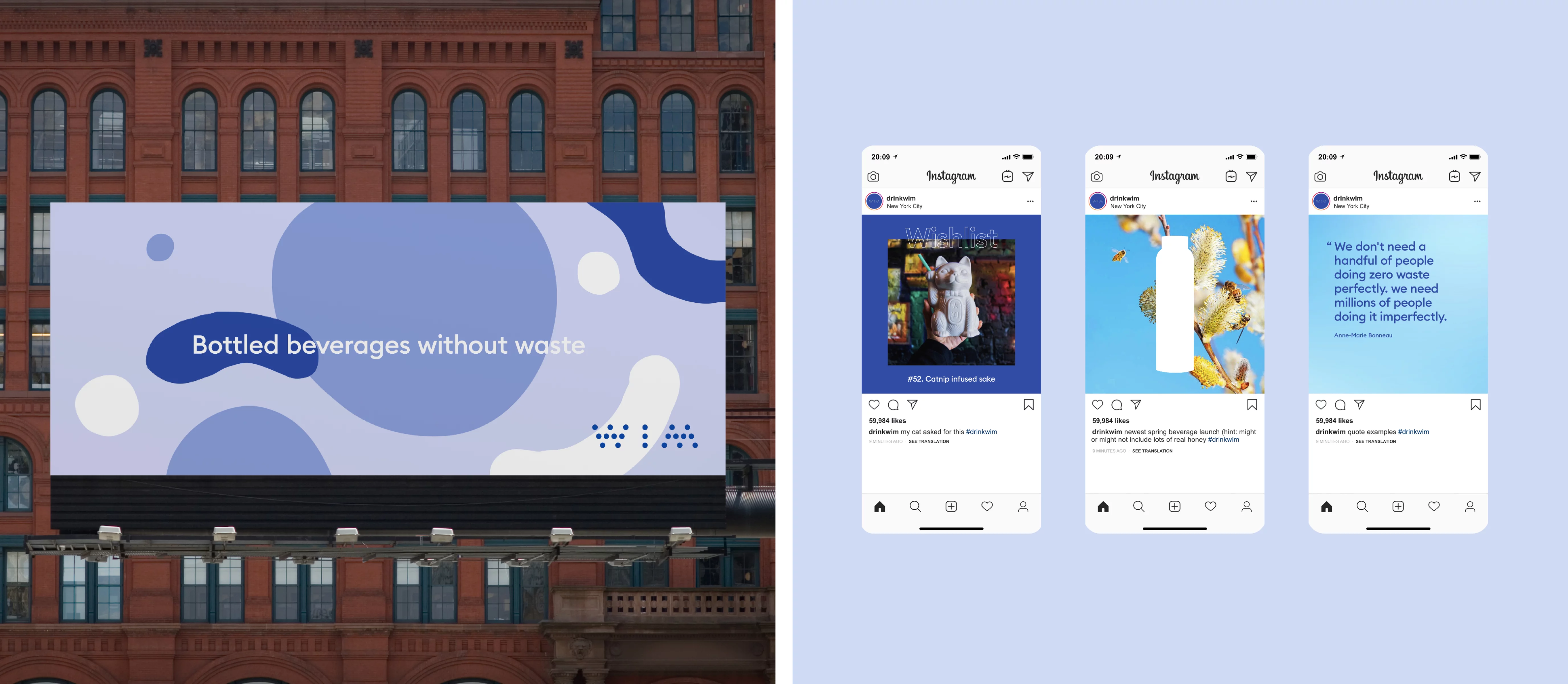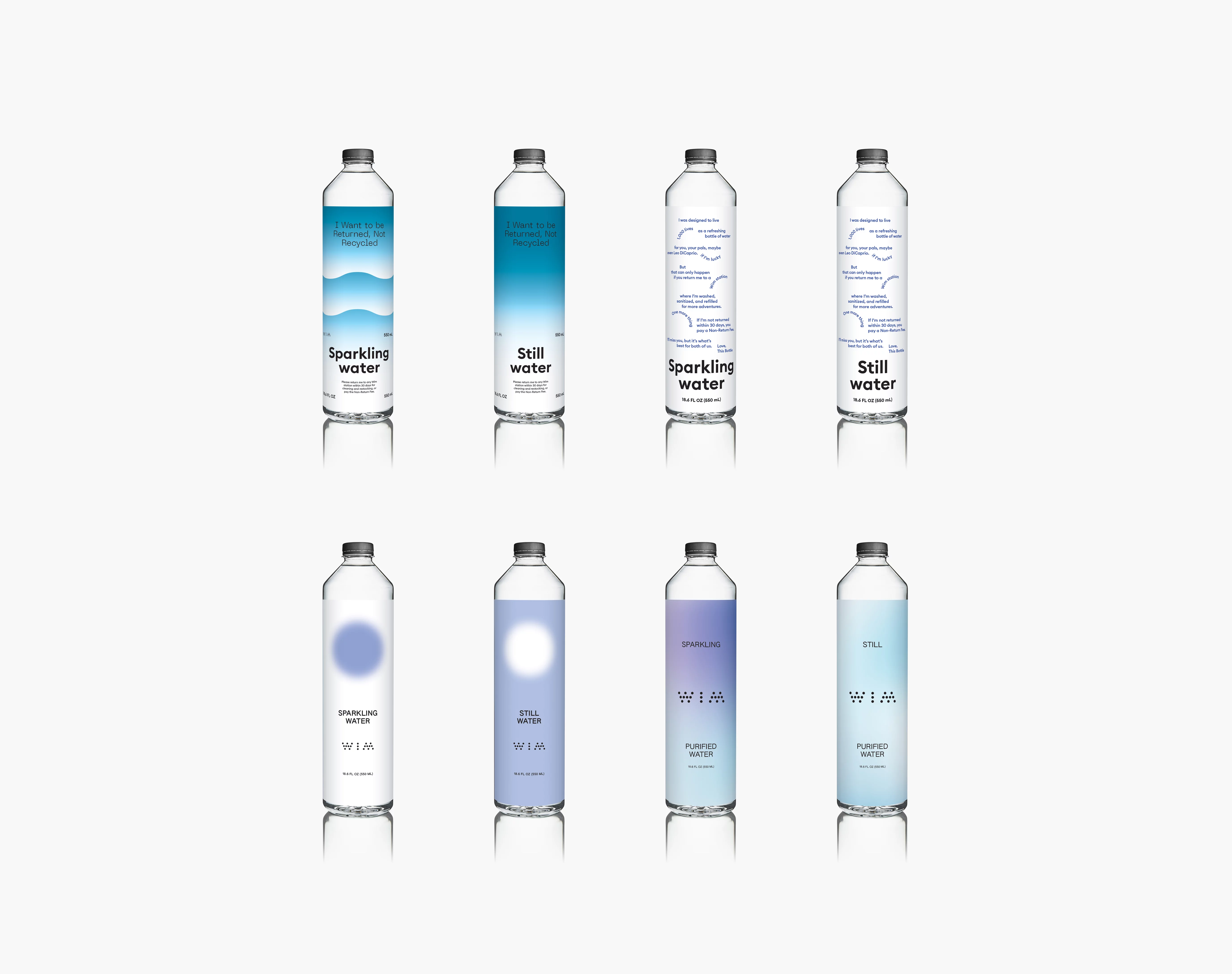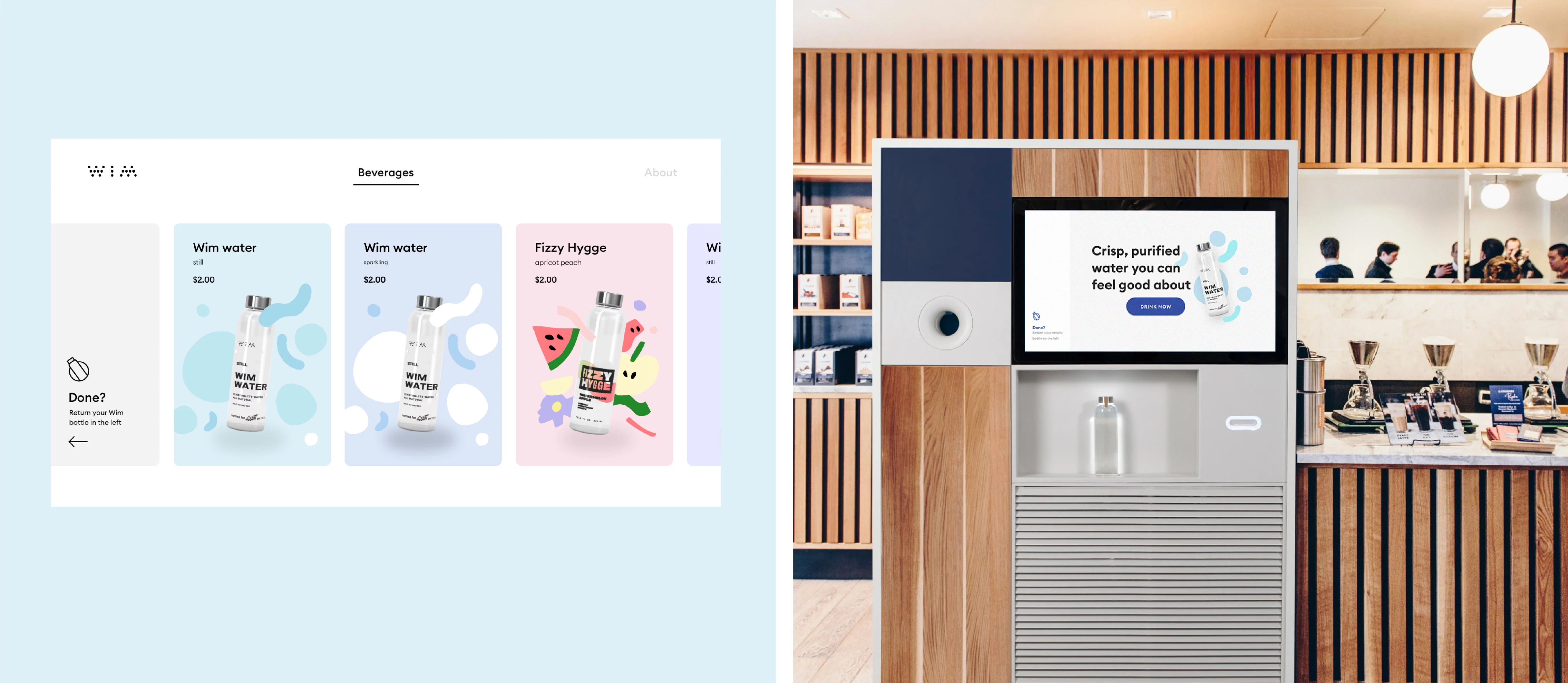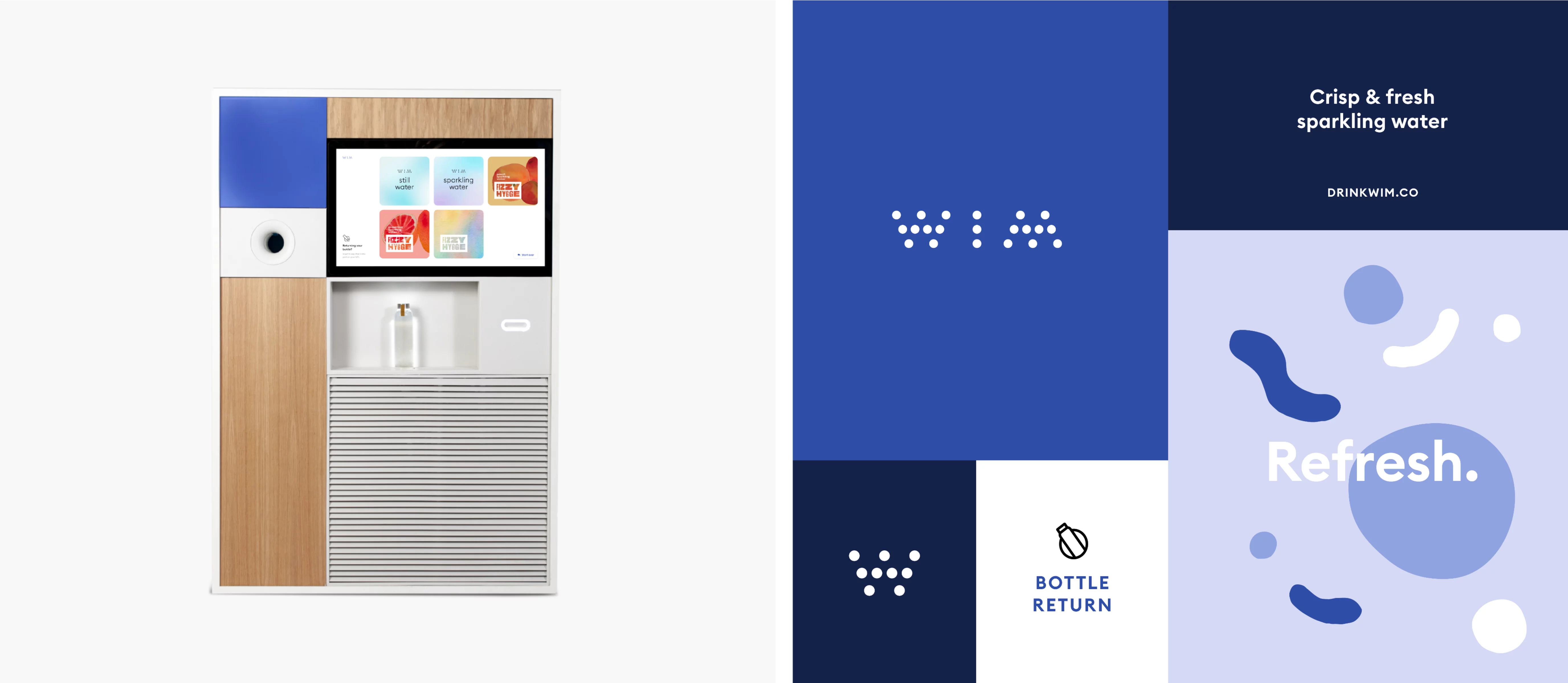 Wim is a sustainable vend-and-return bottled beverage system that offers unlimited refreshment through a closed-loop recycling model. For this project, I developed comprehensive branding and design assets, including bottle labels, kiosk UI, and social media marketing content.